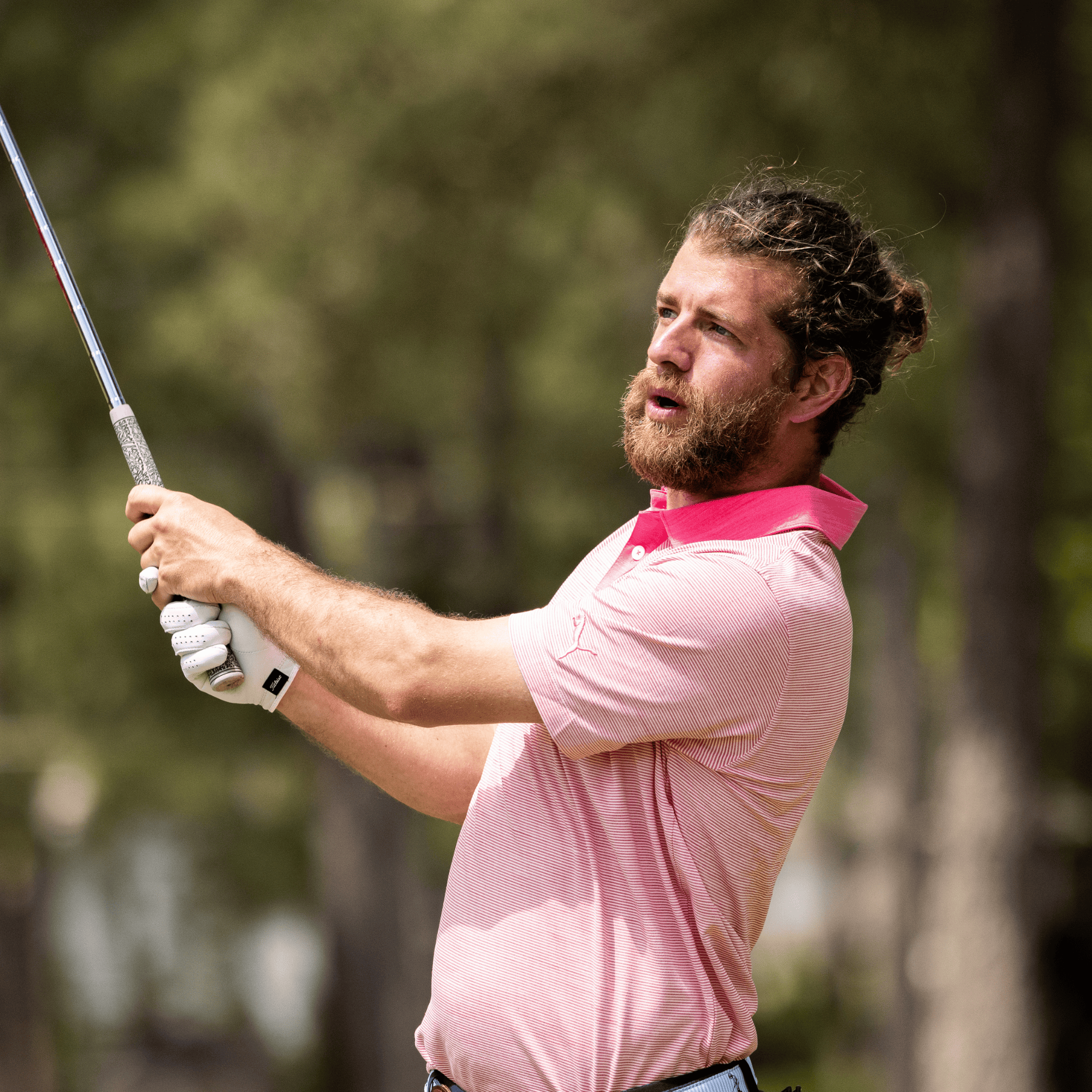 A Joel Dahmen shirt removal after a chip in for birdie..